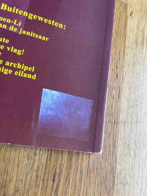 achterkant licht beschadiging bovenaan, rechtsbeneden vlek (sticker?)